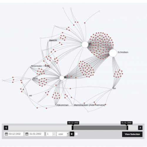 Wir arbeiten mit den Daten zu den Dokumenten von 1848-1975 aus der Datenbank Dodis und nutzen hierfür Nodegoat.
