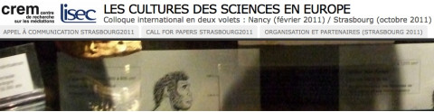 En préparation du colloque international Les cultures des sciences en Europe: dispositifs, publics, acteurs et institutions qui se tiendra à Strasbourg du 13 au 15 Octobre 2011, les organisateurs lancent un appel à contribution…