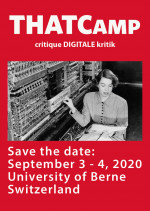 infoclio.ch, l'Université de Berne et l'Université de Lausanne vous invitent au THATCamp critique DIGITALE kritik qui aura lieu à Berne les 3 et 4 septembre 2020.
