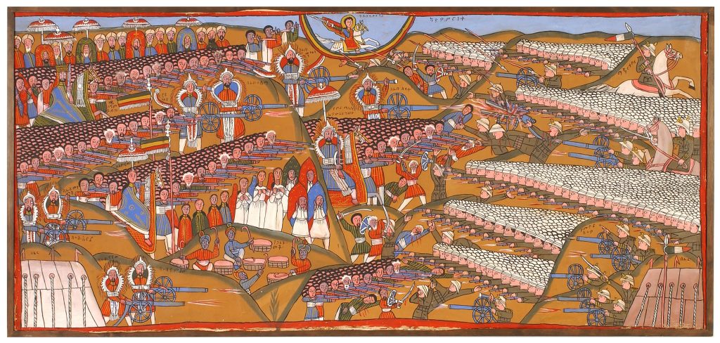 The battle of Adwa (1896). Victory of the Ethiopian troops putting an end to the first Italian-Ethiopian colonial war. Painting on canvas, unknown artist. MEG ETHAF 034815. Photo J. Watts.