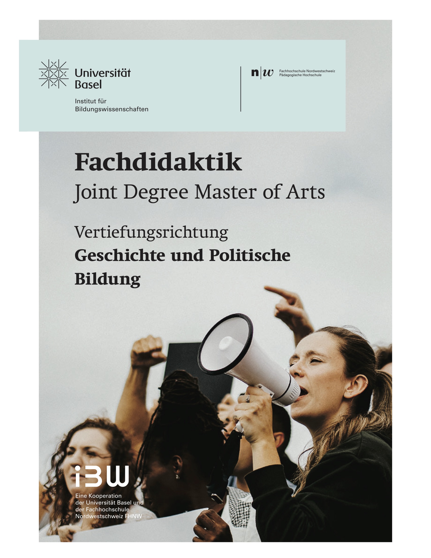 Das Institut für Bildungswissenschaften der Universität Basel und die Pädagogische Hochschule FHNW bieten neu einen Masterstudiengang Fachdidaktik mit Vertiefungsrichtung «Geschichte und Politische Bildung», der politische Bildung und Geschichtsdidaktik systematisch miteinander verknüpft und interdisziplinär erforscht: