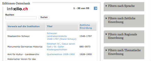 La Banca dati edizioni di fonti è il risultato di un sondaggio sulle edizioni di fonti storiche, realizzato dalla sezione Ricerca fondamentale della Società svizzera di storia.