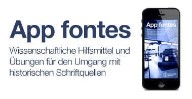 «App fontes» ist eine web-basierte Applikation für Smartphones, die eine Auswahl an wichtigen wissenschaftlichen Hilfsmitteln für den Umgang mit historischen Handschriften in lateinischer und deutscher Sprache beinhaltet.