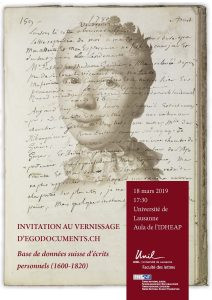 Inauguration et présentation de la base de données Egodocuments.ch, avec allocutions des responsables du projet et présentation…