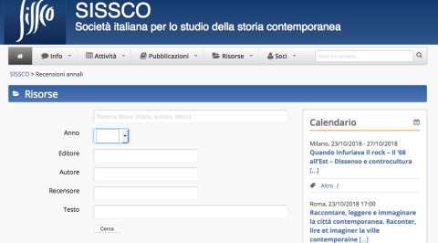 E stata aggiornata la banca dati della Società italiana per lo studio della storia contemporanea (SISSCO), che contiene più di 5000 recensioni pubblicate dal 1999 al 2017 nella rivista Il Mestiere Storico.