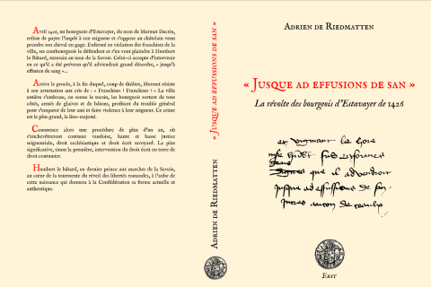 Adrien de Riedmatten, "Jusque ad effusions de san": La révolte des bourgeois d'Estavayer de 1426", Sion, Editiones Rectorati Sanctissimae Trinitatis (ERST), 2018.
